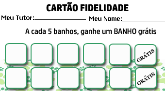 Traga o seu Pet para o Estética Canina - Spa dos Pet's e no seu primeiro banho receba o seu cartão fidelidade carimbado. Nos próximos banhos traga seu cartão e após 5 carimbos ganhe um banho grátis.